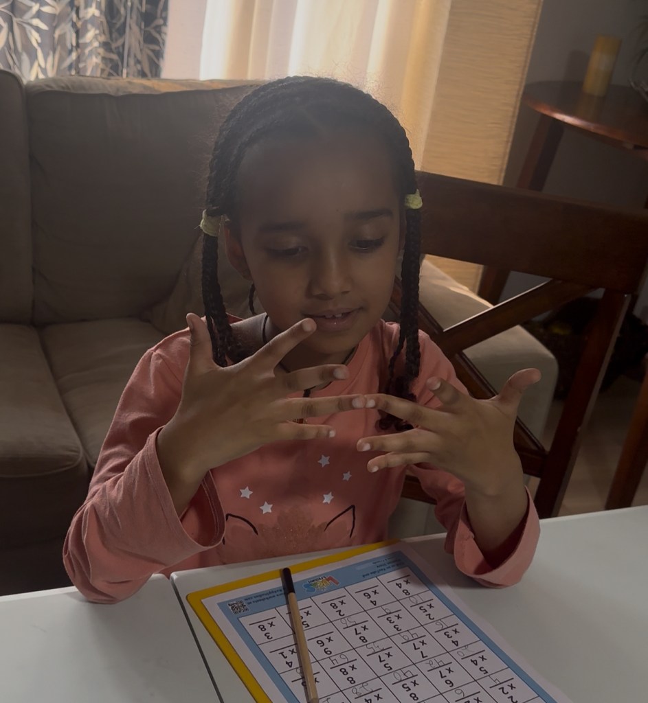Fast forward to the second video, and you’ll witness her growth in action! She now confidently solves multiplication problems using the finger bridge and folding technique, a strategy I introduced to help her work faster, smarter, and more independently. 🙌💪